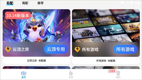 1. 进入网站软件,能轻松对标配、高配、推荐配置进行设置,随即快速开启云游戏盛宴。