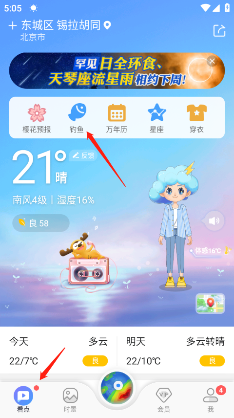 二、在墨迹天气中哪里可以查看钓鱼指数