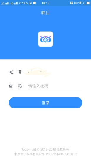开启映目,登录账号;要是没有账号,则需在映目网站或者微信公众号端完成注册。