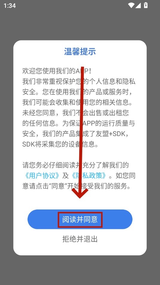 安装并打开气泡音乐,点击阅读并同意