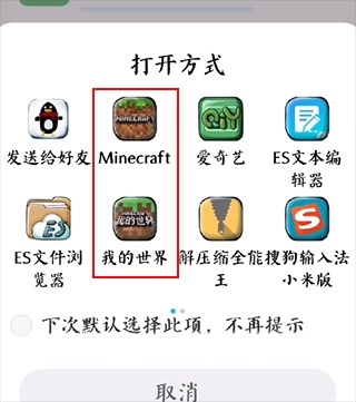 5、当找到目标模组后,点击打开,系统会自动跳转至打开方式选择界面,在其中寻找到“我的世界”,然后点击确定。