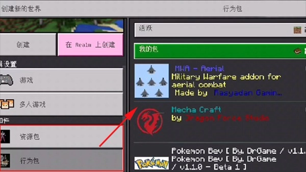 6、接下来回到游戏创建世界,在资源包中就能选择刚刚获取到的mod模组。