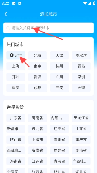 你可以选择获取所在城市的信息,或者查看系统推荐的热门城市,还能直接查找自己感兴趣的城市。