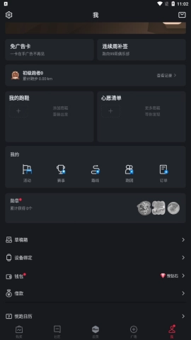 打开悦跑圈应用后,进入个人中心页面,接着在该页面里查找与智能设备关联相关的功能入口。
