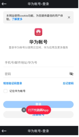 输入华为账号并获取手机验证码完成登录。