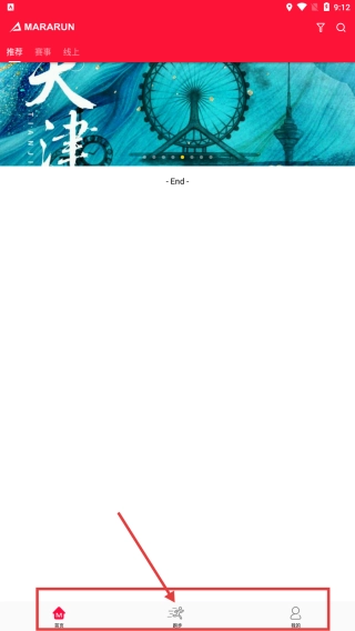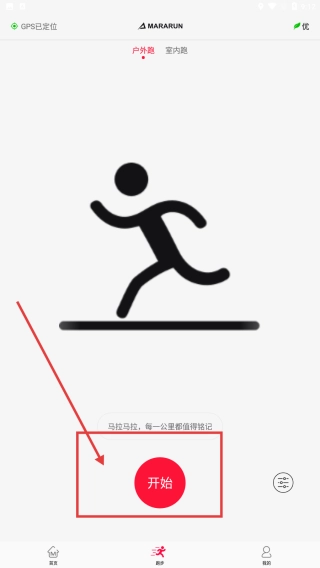 启动MARARUN应用程序后,找到底部导航栏正中间的跑步标识并点击,即可跳转至跑步功能的专属界面。