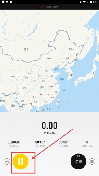 跑步过程中,可点击左下角暂停按钮,暂停当前跑步记录。