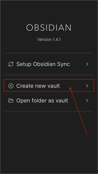 点击【Create new vault】按钮来新建一个存储库,这个库会作为Obsidian笔记的存放路径,之后还需要配置成云端同步模式。