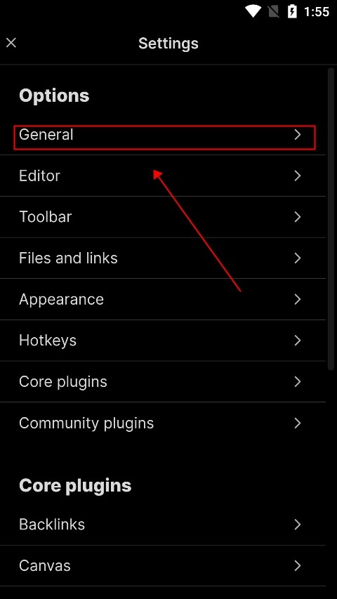 在当前页面找到【Options】的子选项【General】并点击它。