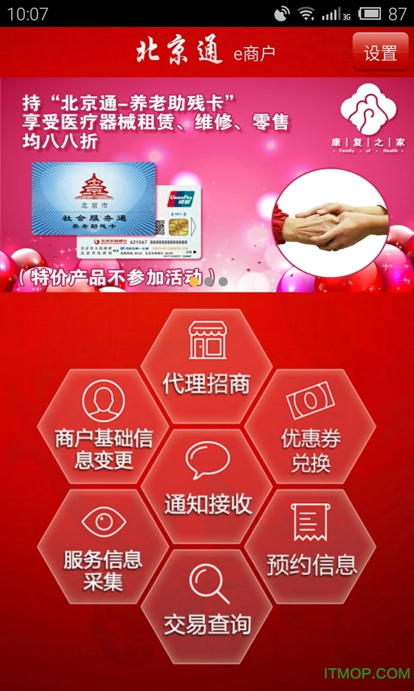 “北京通e商户”是专门为北京市社区服务协会发展的签约服务商打造的信息化应用,旨在提高商户养老服务质量,提升商户品牌影响力与交易额。