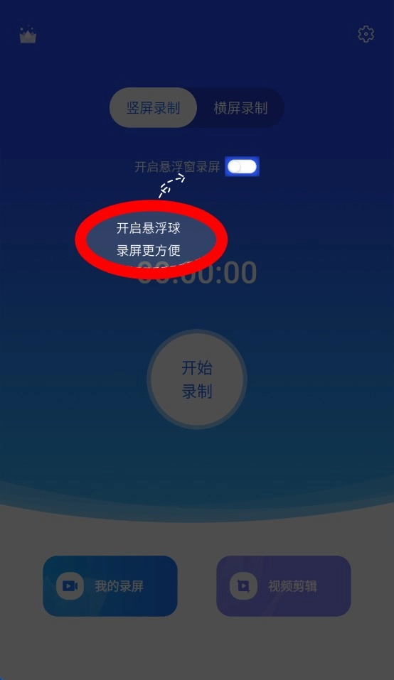 可以开启悬浮球功能,这样就能在任意界面通过一键操作来开启或暂停录屏了。