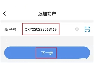 请输入您收到的短信中以QRY开头的商户号,接着点击下一步按钮。