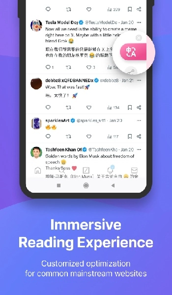 沉浸式翻译软件安卓版是一款专为安卓手机打造的在线翻译应用,无论是和世界各地的外国人交流,还是处理全球常用语言的翻译需求,它都能轻松应对。这款应用支持多平台适配,能在各类安卓机型上稳定运行,不仅可以精准翻译网页内容,在刷视频时还能自动生成翻译字幕,而且翻译结果会自动保存,方便用户后续进行语言学习与复习。