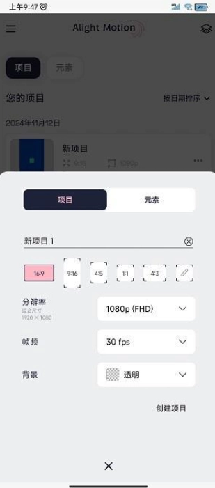 在本站安装好axcven剪辑软件的最新版本后,启动并打开该软件。首先点击首页中间位置的加号按钮,通过这一操作可以创建新项目。接着,你可以依据自身需求,对项目的名称、画面比例、分辨率、帧频以及背景等参数进行设置。