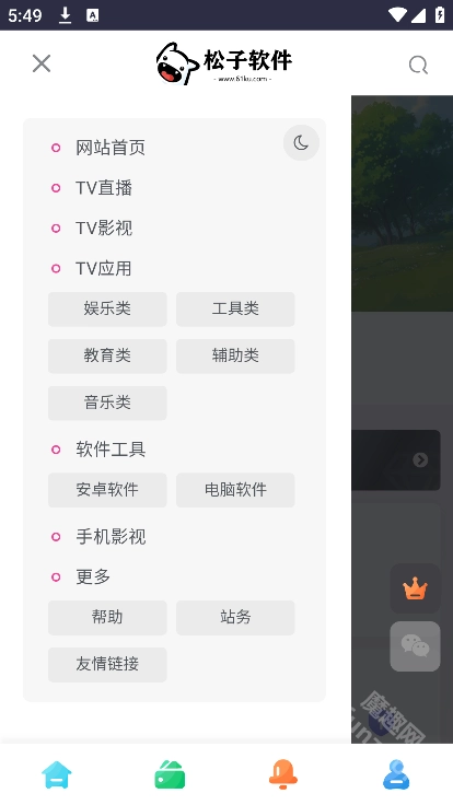 在魔趣网松子软件库,进入首页,点击左上角三杠