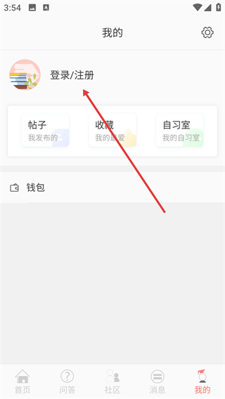 2、进入个人中心页面后,点击【登录/注册】选项,即可跳转至登录页面。