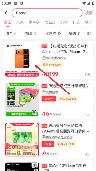 3、在搜索结果页面里,找到你心仪的iPhone商品并点击,就能进入商品详情页查看相关信息。