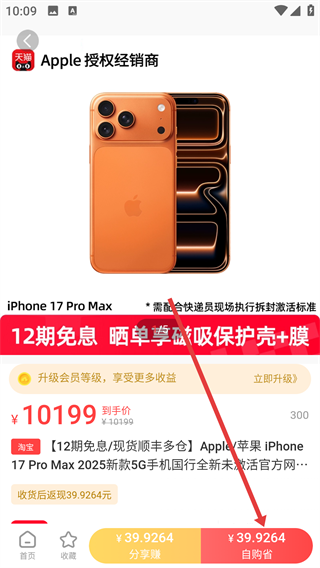 4、在iPhone商品详情页,点击【自购省】按钮,就能享受优惠并完成购买操作。