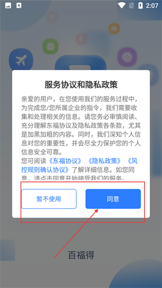 阅读《服务协议和隐私政策》的相关条款后,点击【同意】按钮就能进入应用的登录环节,这是使用平台服务必须完成的步骤。