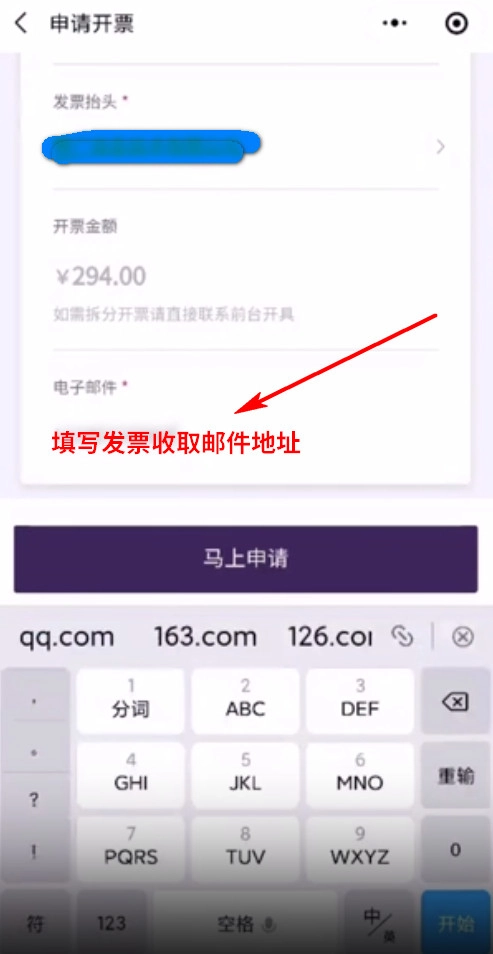 步骤三:添加发票抬头与电子邮箱,提交申请