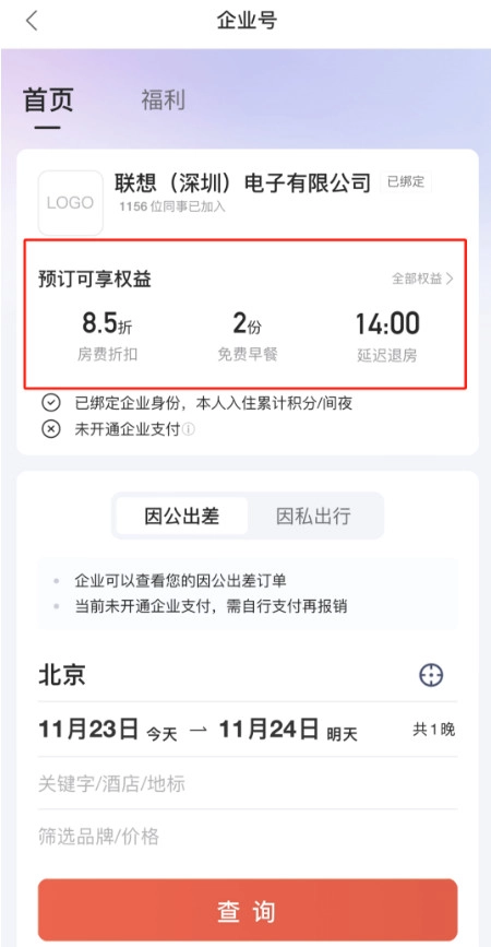 手机端专享的飞猪信用住、Apple Pay等创新支付方式;企业用户也能通过手机获取专属优惠价格。