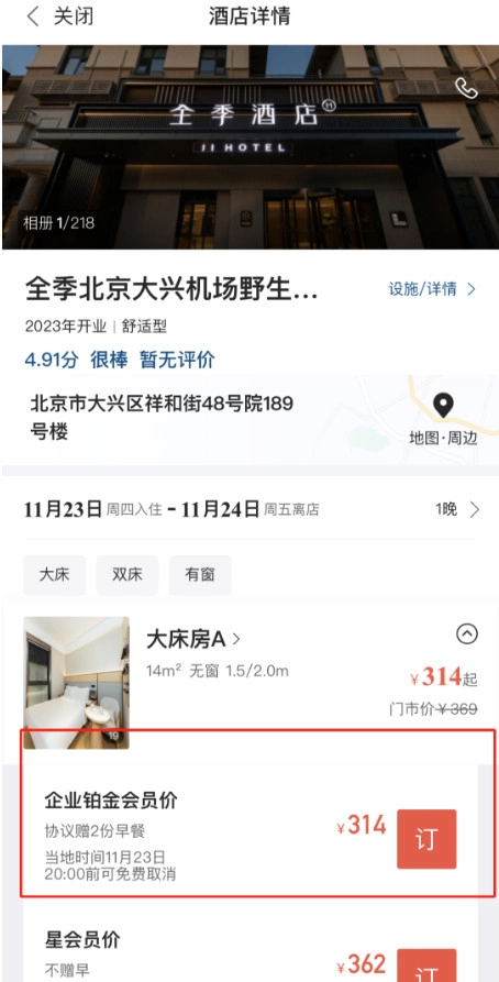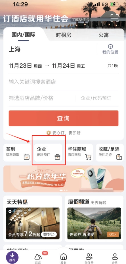 华住会平台的酒店均享直销优惠价,价格更具优势;从预订到入住,我们提供一站式的全方位住宿服务;企业客户可使用专属“企业号”,实现差旅流程闭环管理,员工无需垫资和报销,入住还能领取积分与优惠券。