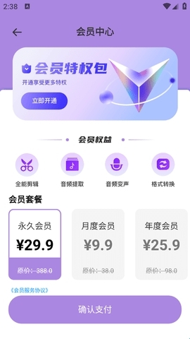 3、如此一来你就能进入会员中心,既可以选择包月套餐,也能直接开通永久会员,完成支付后即可成为该平台的尊贵会员。