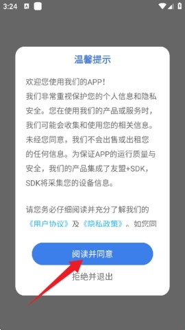 1、本页面安装好软件后点击进入,然后同意协议。