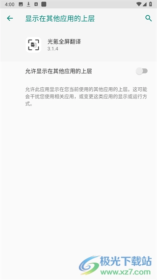 6、之后点击上方的悬浮球,将“允许显示在其他应用的上层”这一服务开启。