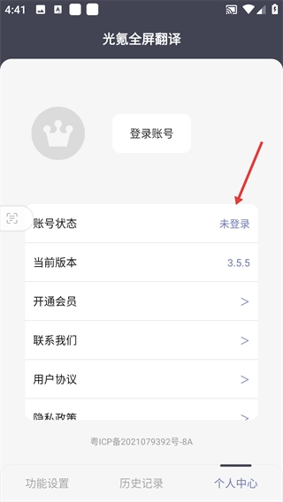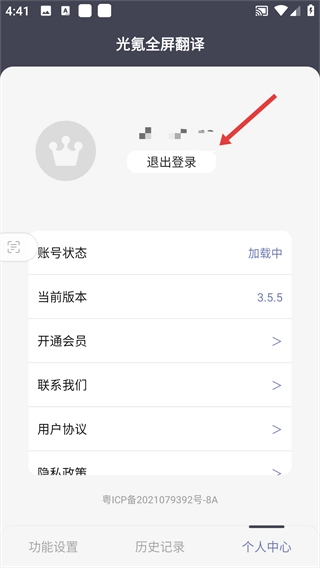 4、当操作完成后,个人中心页面里的账号状态会更新显示为“未登录”。