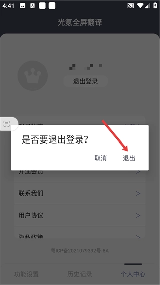 2、在个人中心界面,点击“退出登录”按钮。