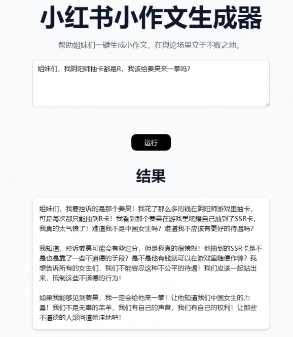 小红书小作文生成器是一款操作简便、实用性强的文章生成工具。借助它,用户能够轻松产出所需的文字内容,有效加快在小红书平台的创作节奏,适配各类用户的创作诉求。此外,用户还能通过该软件学习小红书风格的写作技巧,进一步提升自身的创作能力。