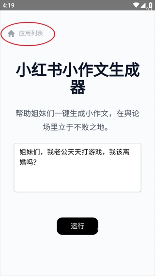 2、在界面的左上角位置,还能点击应用列表,去探索更多有意思的应用。