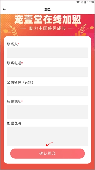 2、录入联系人的姓名与电话号码,填写公司基本信息及加盟说明,最后点击确认提交就可以了。