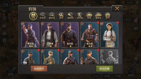 1、调兵遣将——将领的征召与培养是克敌制胜的根基,麾下有名将坐镇,遇敌便能果断出击,做到战无不胜、攻无不克。各位长官在开局时就能拥有步兵部队的两位核心将领,他们分别是独立团团长李云龙和独立团一营长张大彪。