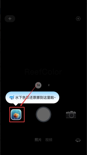 拍摄时可借助悬浮控件快速切换色彩模式:浅水区建议选用自然还原模式,深水区则可开启增强校正模式。