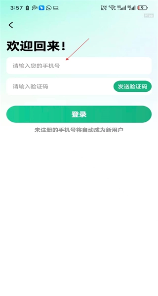 4、进入手机号登录界面后,依次输入手机号、获取并填写验证码,最后点击登录按钮,即可完成软件登录操作。