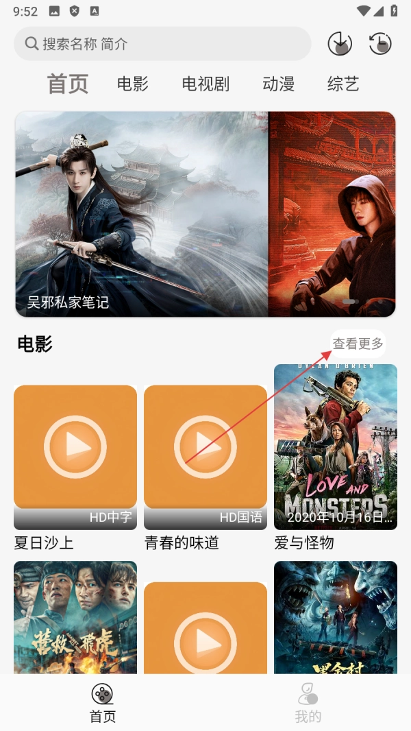 1、点击【查看更多】,进入电影分类页面。