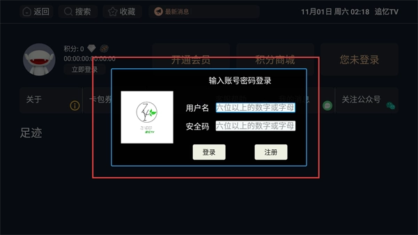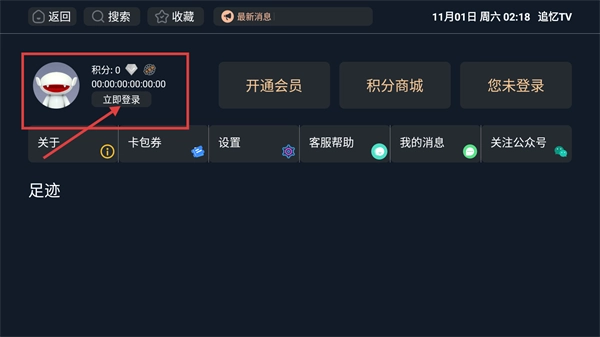 在追忆TV首页,点击左上角的个人中心图标,即可进入个人中心界面。