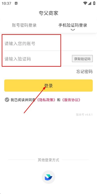 2、在登录页面点击手机验证码登录选项,切换到验证码登录界面。