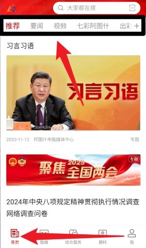 1、在首页页面中,可以浏览推荐、要闻、视频及图片等不同内容板块,获取阿图什市最新权威资讯与时事热点。