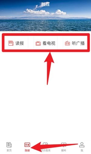 2、点击底部的融媒按钮,可以进入融媒体功能区,在此可实现读报、看电视、听广播等多种本地媒体服务。