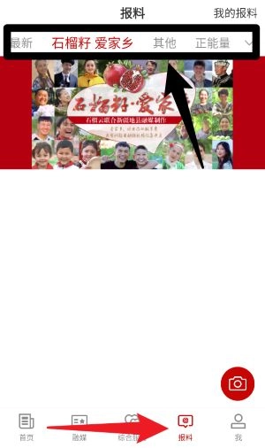 4、进入报料页面后,可根据不同栏目上传和浏览新闻线索,支持石榴籽、爱家乡等特色主题内容互动。