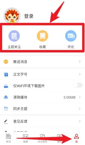 5、在我的页面中,用户可进行登录操作,并查看主题关注、评论等个人中心功能,方便管理个人使用记录。