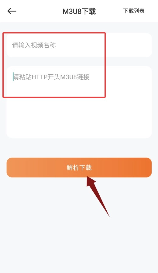 3、M3U8界面可输入视频名称并粘贴HTTP链接,解析后。