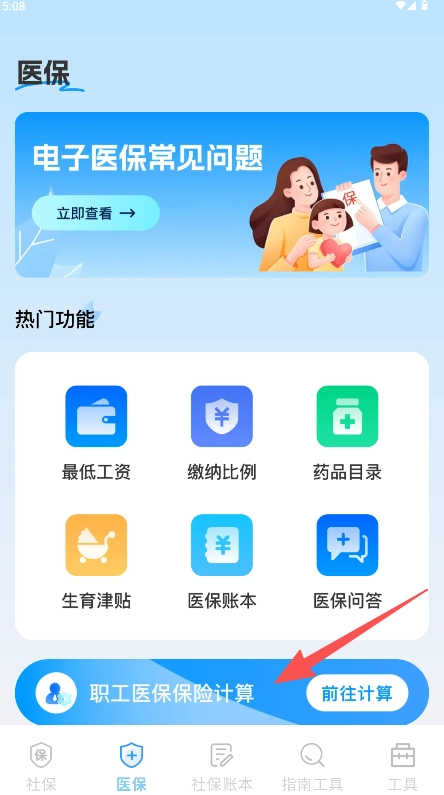 2、在医保页面找到并点击“职工医保保险计算”按钮。