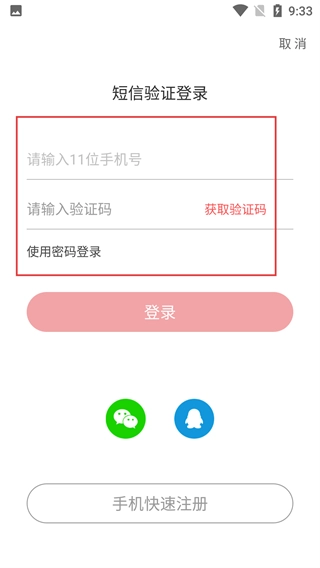 3、进入【短信验证登录】页,先填【请输入11位手机号】,点击【获取验证码】,完成后即可点击登录按钮。