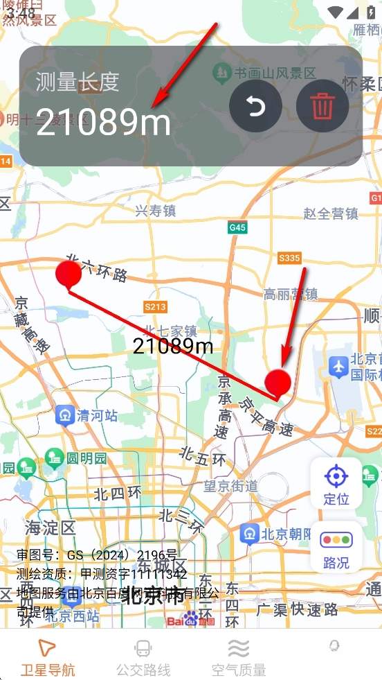 【空气质量】展示区域内空气质量分布情况,帮助用户避开污染严重的区域,选择更加清新的出行路线。