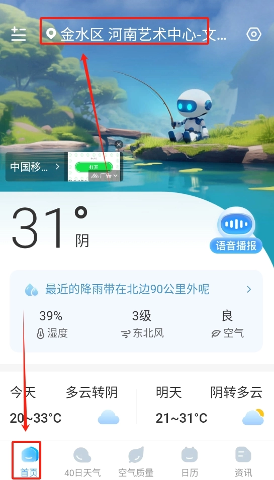 3、可以看到当天的天气状况,还能语音播报。