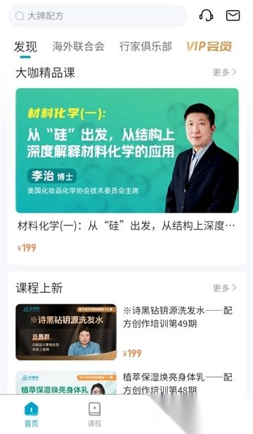 3、课程体系划分为日化护理与工业材料两大垂直领域